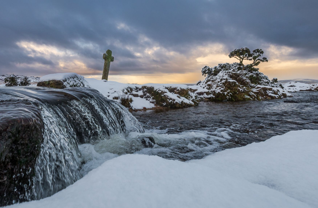 The image, taken by myself, is of snow at Beckamoor Cross, otherwise known as Windy Post, Dartmoor, Devon.