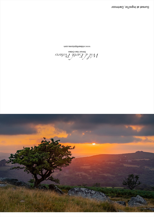 Sunset at Ingra Tor - Dartmoor, Devon. A6 photographic greeting card. Blank inside for your own message.