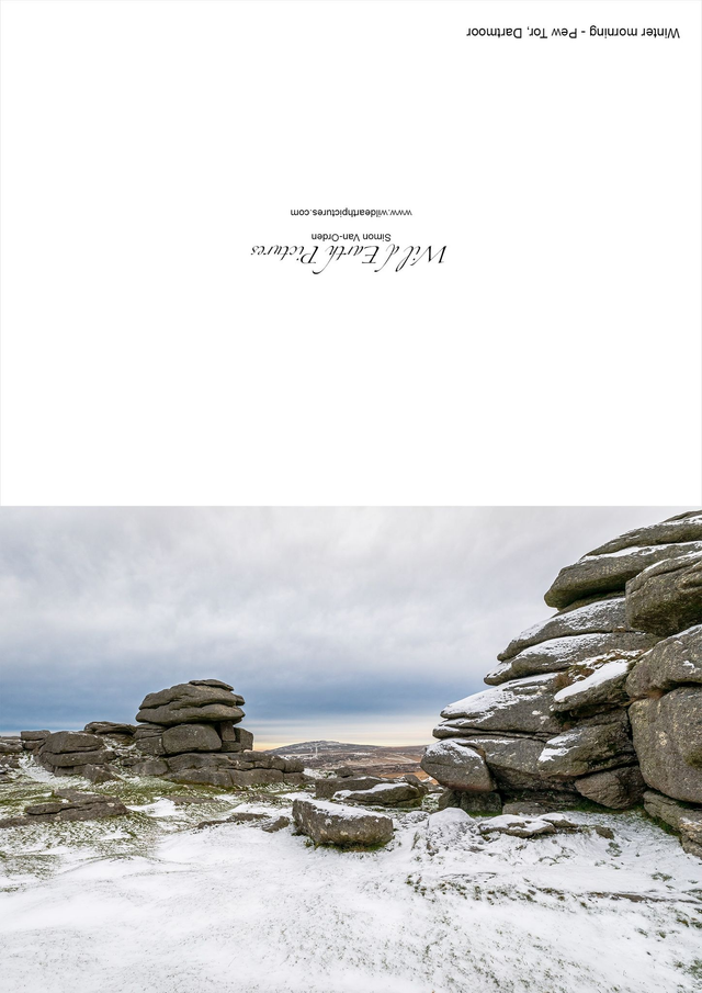 Winter Morning - Pew Tor, Dartmoor, Devon. A6 photographic greeting card. Blank inside for your own message.
