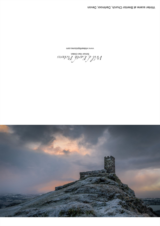 Winter scene at Brentor Church - Dartmoor, Devon. A6 photographic greeting card. Blank inside for your own message
